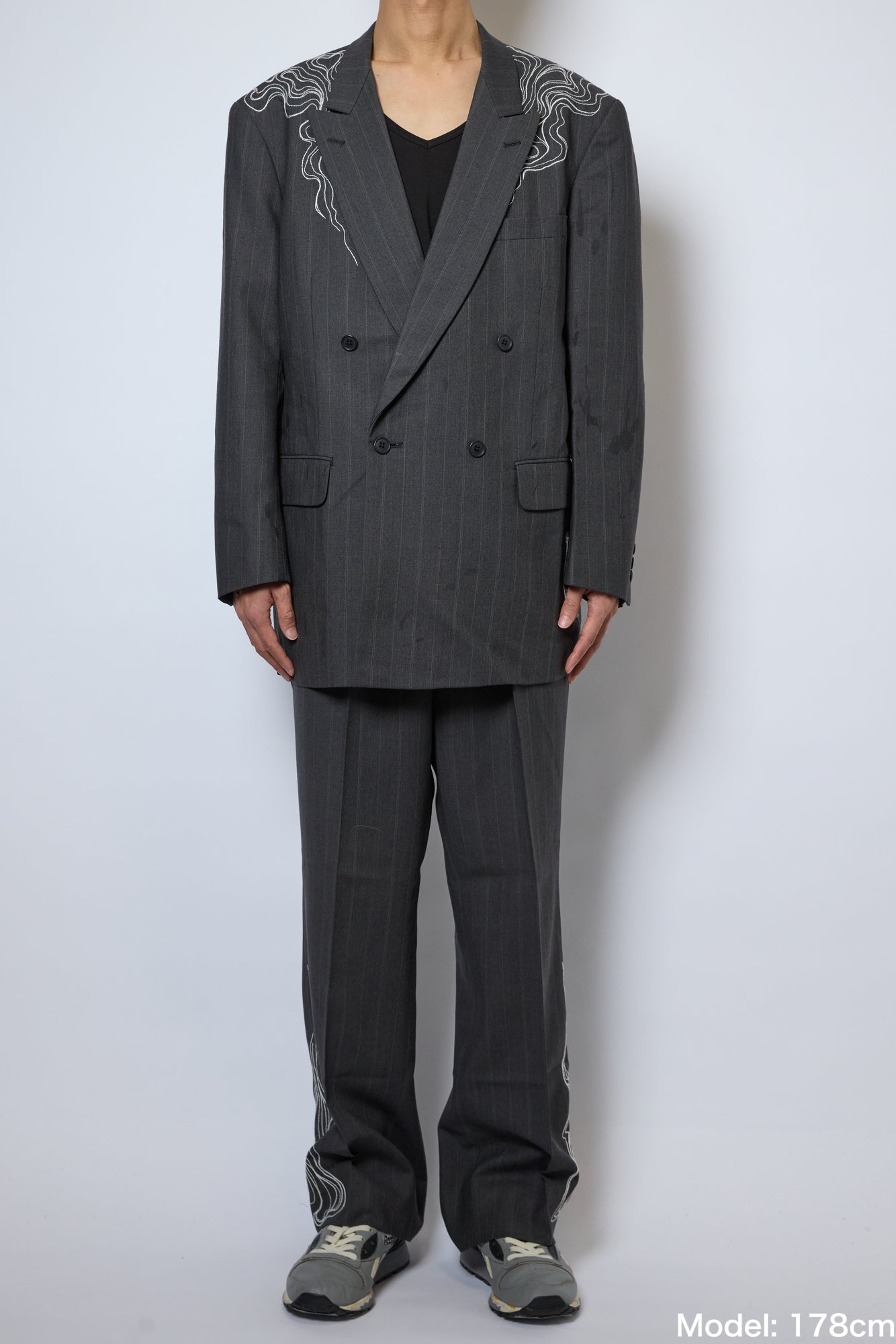 セットアップスーツに手刺繍を全体に施したアイテム。